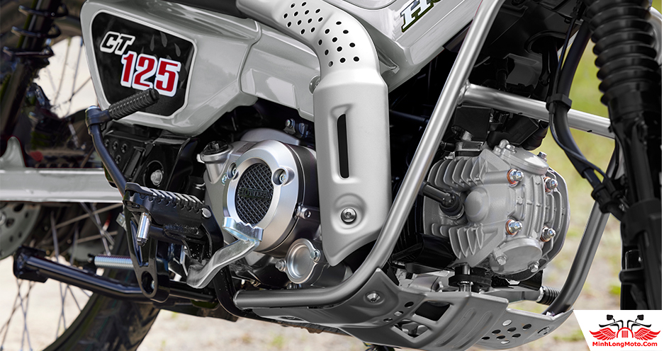Về động cơ, Honda CT125 2026 sẽ tiếp tục sử dụng khối động cơ JA65E xi lanh đơn, làm mát bằng không khí. Khối động cơ này cung cấp công suất tối đa đạt 6,7kW tại 6.250 vòng/phút, mô men xoắn cực đại 11Nm tại 4.750 vòng/phút.